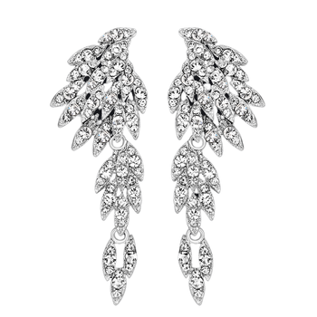 Elegante 18K Banhado A Ouro das mulheres CZ Longo Dangle Pena Asa Gota Brincos Boho Moda Jóias para Festas à Noite