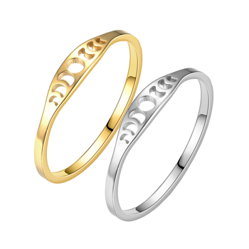 Atacado Oco Lua Fase Anel para As Mulheres 18K Ouro Aço Inoxidável Crescente Lua Bruxa Amuleto Jóias Presente para Amante Casamentos